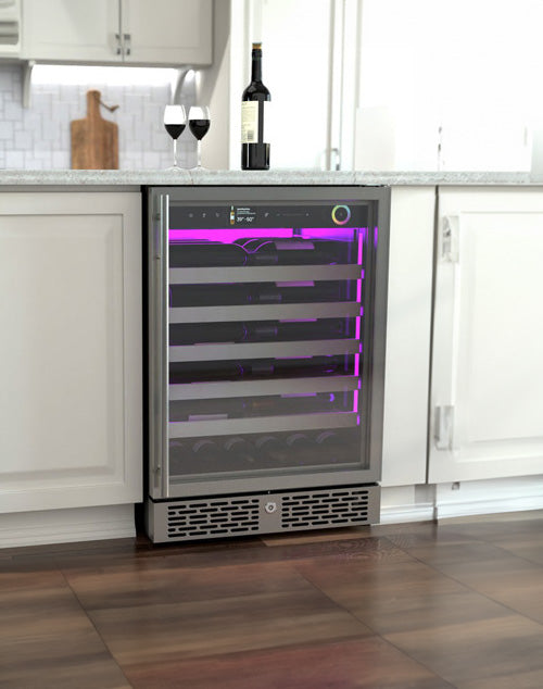 Temperature fluctuations can negatively affect the taste of the wine. Additionally, the relative humidity of your wine cooler or cabinet should be between 50 to 70%. Without humidity, the corks of the wine bottles will dry out, allowing oxygen to seep into the bottle. Wine bottles should be stored in a horizontal position on a wine rack so that the liquid inside the bottle touches the cork, preventing oxidization.