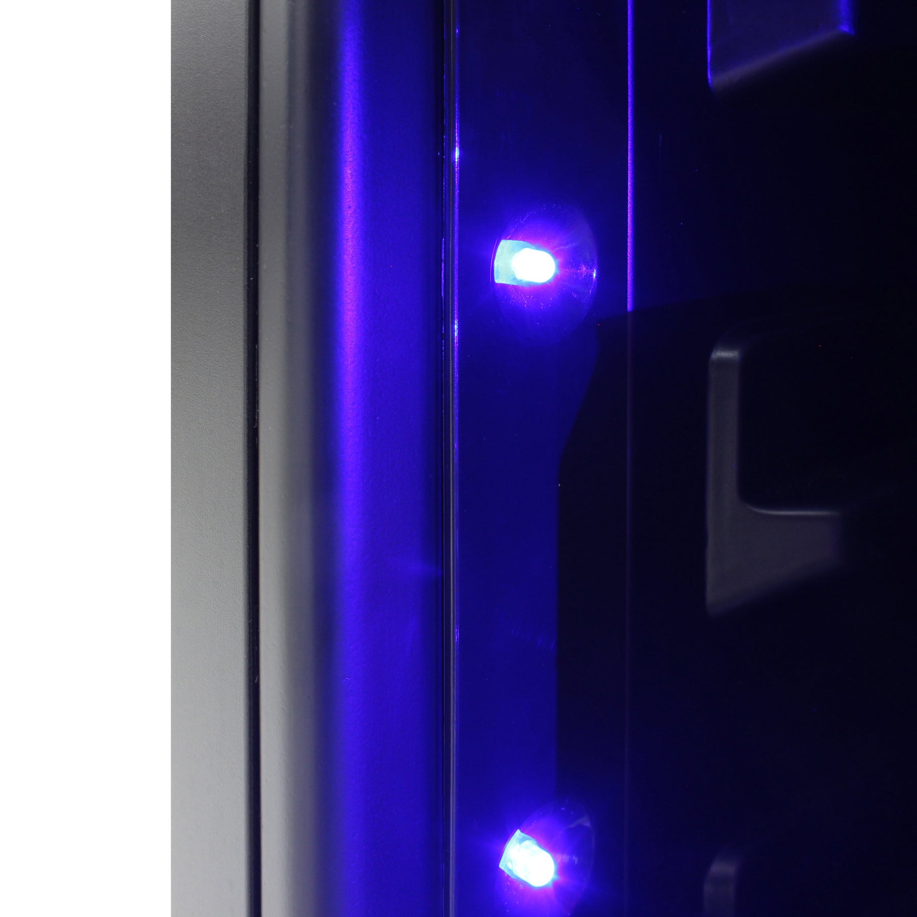 - Frameless black cabinet with seamless, all-glass technology and pole handles