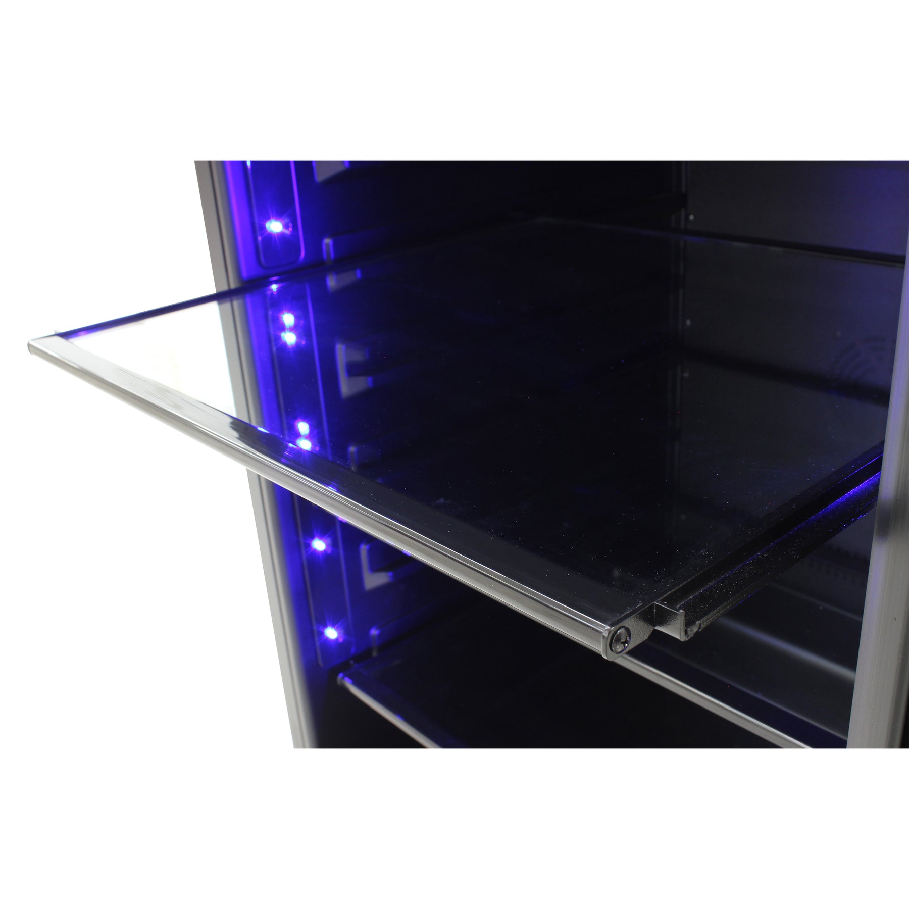 - Holds approximately 98 bottles in the top section and 200 cans in the bottom section